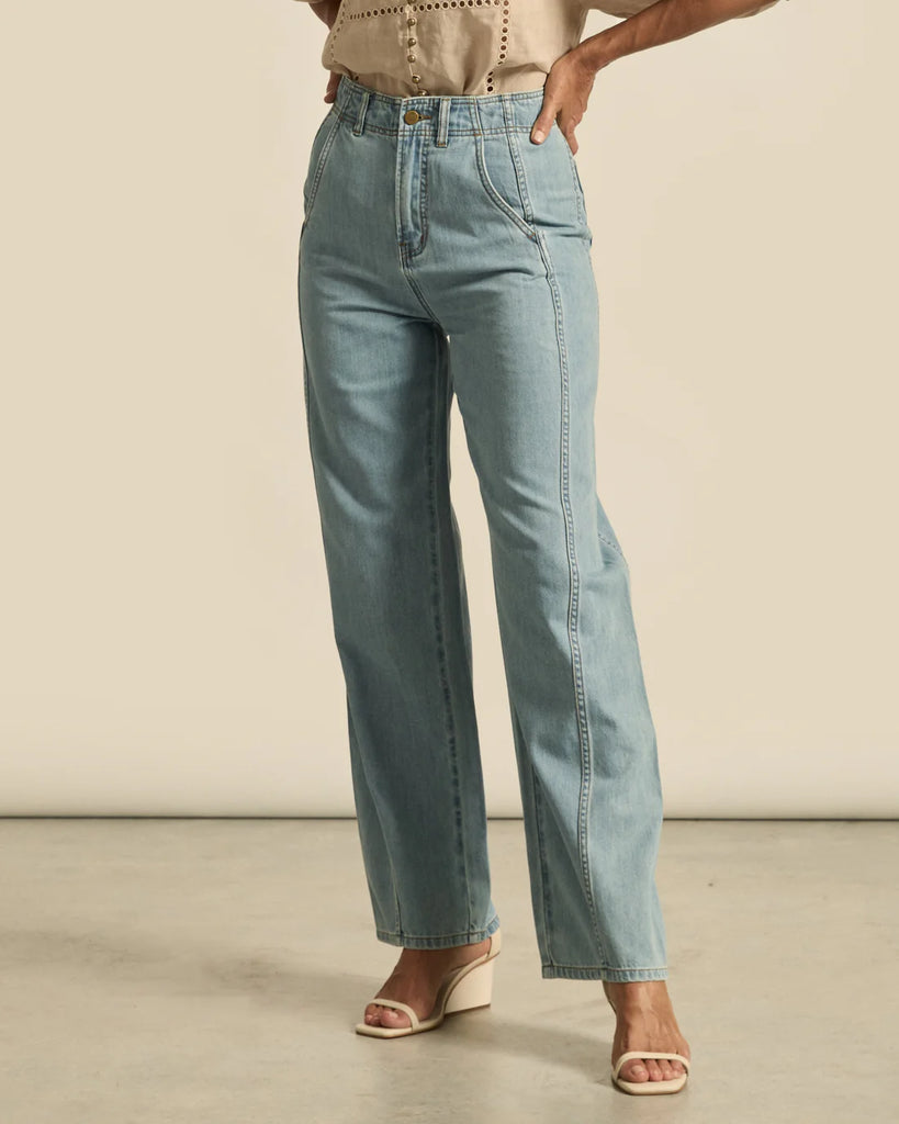 - High-waisted, barrel-leg silhouette for a timeless fit