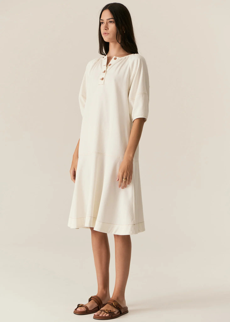 -Marisa is 179cm tall and a size 8 wearing a size 8 in the Dark Wash and the Ecru, with the buttons worn to the front in the Ecru colour way. Valeria is 177cm tall and a 6-8 wearing an 8 in the Dark wash.