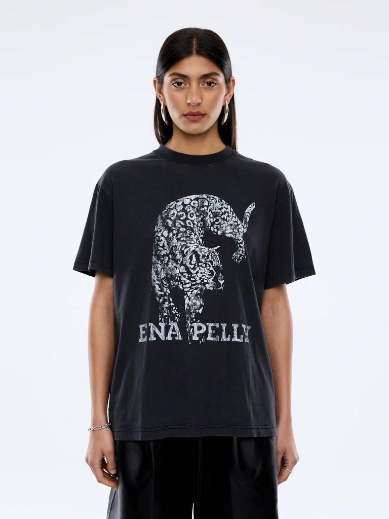 Cut from cotton, the Crawling Leopard Tee in vintage black brings a boxy, relaxed fit tee silhouette. Finished with collegiate graphic with leopard detail and a