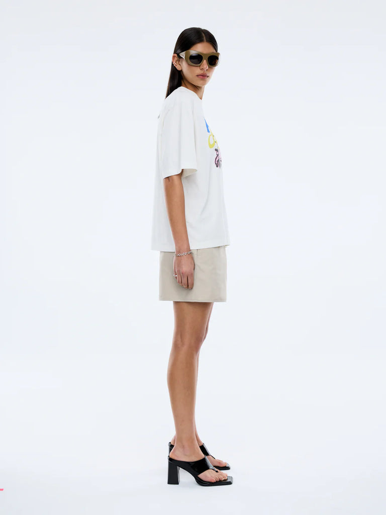 The Pelly Floral Tee in vintage white is crafted from cotton, featuring a boxy relaxed-fit tee silhouette. The tee features a floral inspired graphic exclusively designed inhouse.
