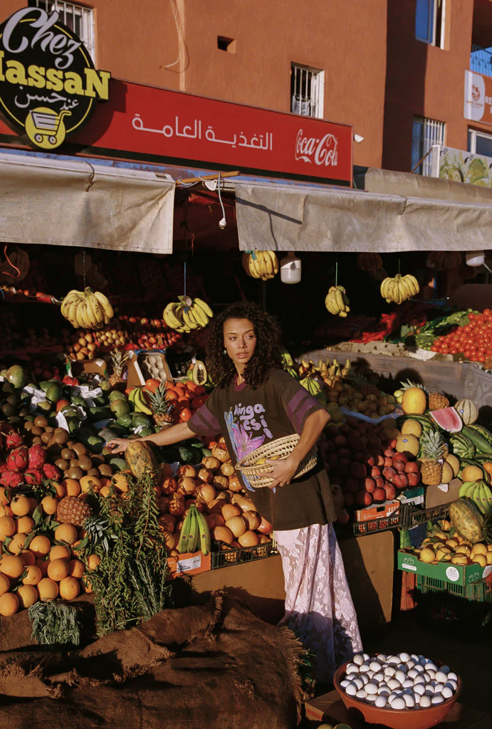 An easy statement tee made for relaxed days, worn back with lace, denim, or layered into everyday rotation.