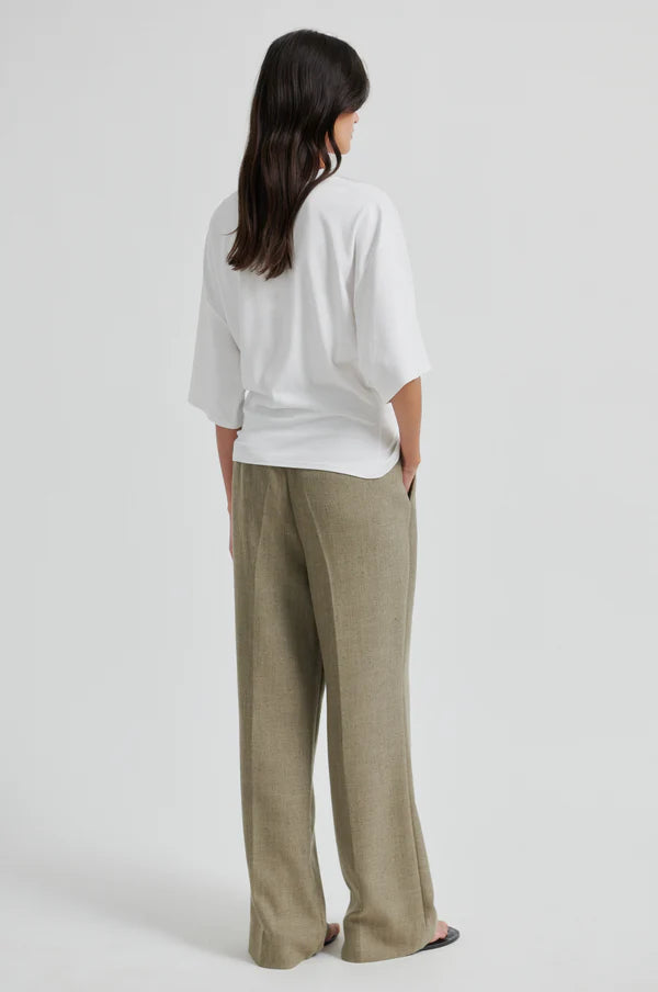 Second Female gathered short-sleeved tee. The t-shirt is made in a soft, stretchy lyocell-cotton blend. Featuring a round neckline and dropped shoulders. Gathered detail at front for draped effect. Relaxed fit at top with more fitted waist.